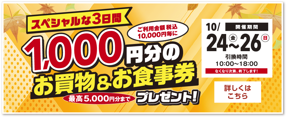 10月25日(土)クサツオクフェス2025詳細はこちら 10月26日(日)ジャズ&ポップスLIVE・マルシェ・ワイン試飲会詳細はこちら 10月26日(日)ハロウィン☆フェイスペイント詳細はこちら 11月2日(日)キミとアイドルプリキュア♪ショー詳細はこちら 11月2日(日)オリジナル「こども免許証」を作ろう詳細はこちら 11月3日(日・祝)カレー日和詳細はこちら 11月8日(土)~12月25日(木)クリスマスイルミネーション詳細はこちら